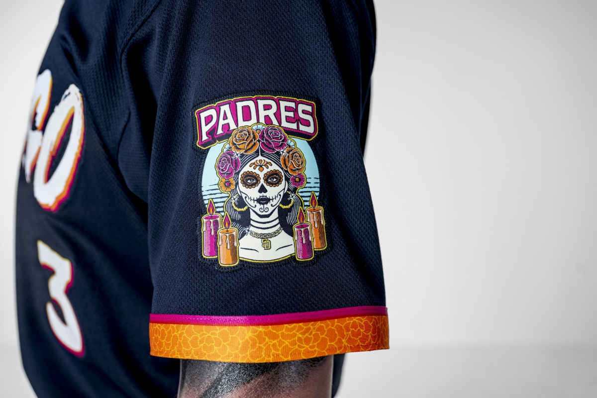 The Padres will sport their new "City Connect 2.0" uniforms with a special patch on the arm tonight at home against the Colorado Rockes. Photo courtesy San Diego Padres