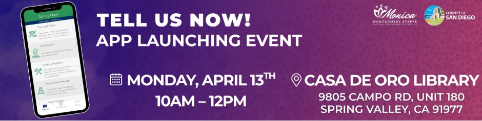 The app has been helping people connect to County services since it first launched in 2017, but to help more residents navigate the digital tool, the office of Supervisor Monica Montgomery Steppe is hosting a community meeting focused on using the app on Monday, Apreil 13 at the Casa de Oro Library.