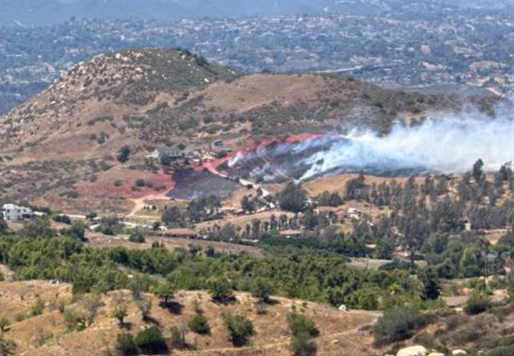 Just after 1:30 p.m. today, CAL FIRE initially reported that firefighters were at a scene of a vegetation fire at the 14950 block of Highland Valley Road in Ramona. The fire was initially reported at four acres with an an immediate structure threat.