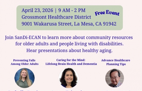 April 20, 2026 (La Mesa) -- Health advocates from across San Diego County will provide critical resources through the upcoming “Spring into Healthy Living 2026: Senior Conference & Resource Fair” on Thursday, April 23 at Grossmont Healthcare District headquarters.