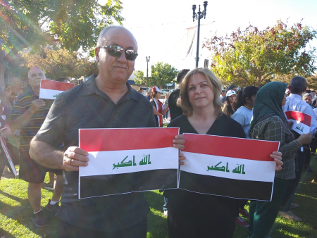 Around 450 protesters gathered in El Cajon, home to tens of thousands of Iraqi immigrants and refugees. The local protesters stand in solidarity with demonstrators in Iraq and decried the violent crackdowns on protesters in Iraq that have injured between 600 and 1,200 people, killing 20 to 30 or more.