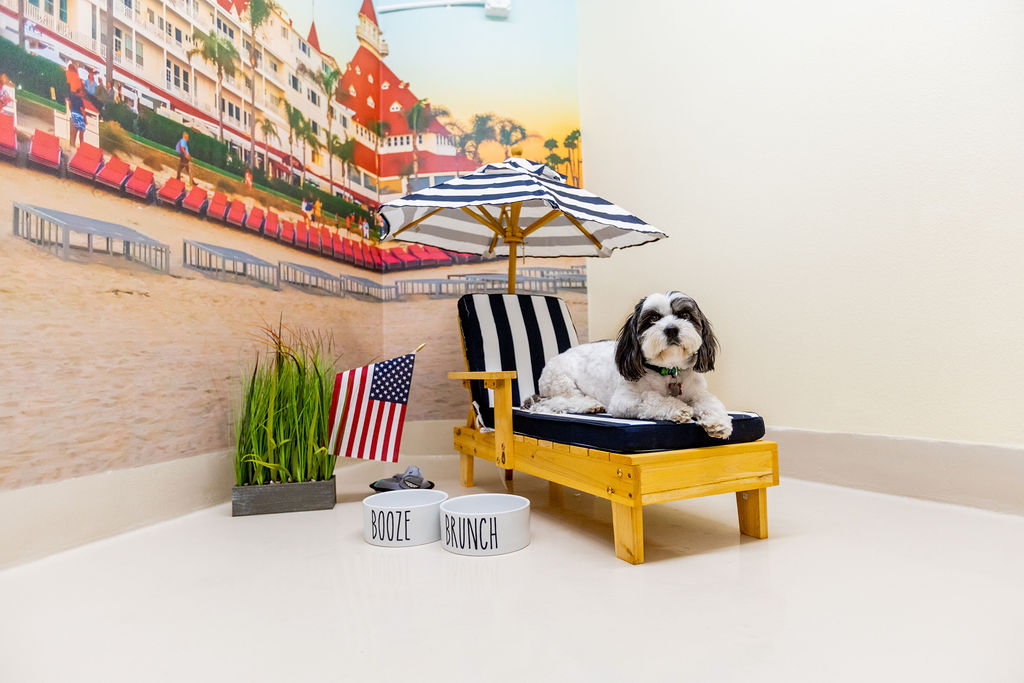 On the ground floor is also where the doggy daycare, dog grooming, three indoor and three outdoor play areas, and boarding areas are, which includes three San-Diego themed private suites. One of the main perks of the private suites is access to a live feed allowing owners to check in one their pooches virtually anytime.