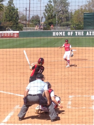 Photo: Kiera Wright had two of SDSU's four hits in the game. Courtesy goaztecs.com