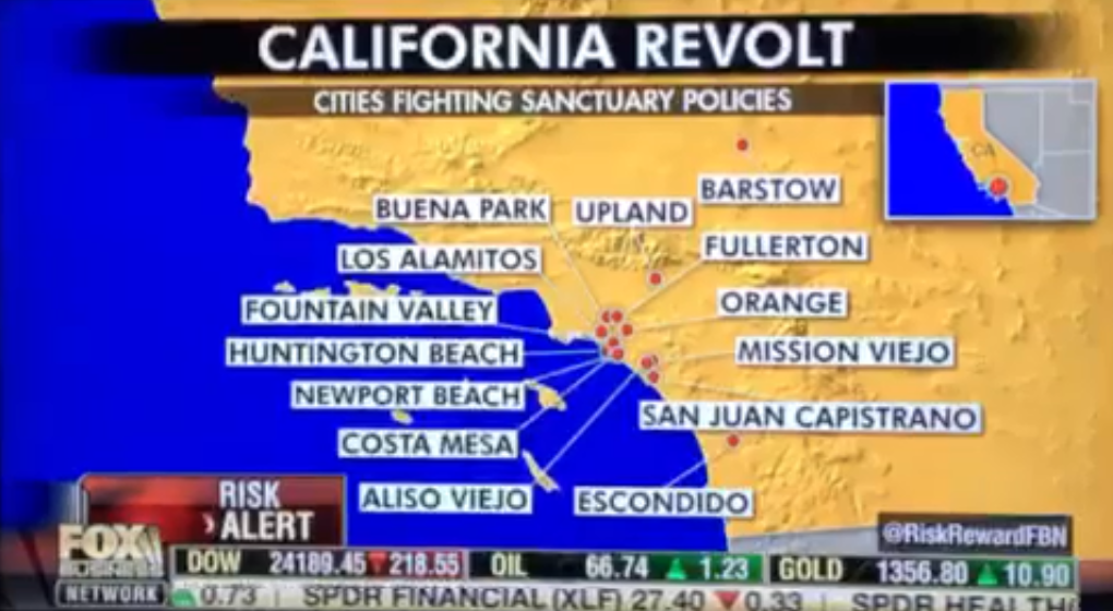 April 30, 2018 (El Cajon) -- Bill Wells, El Cajon Mayor and a Republican challenger to Rep. Duncan Hunter in the 50th Congressional district, has appeared on the FOX Business program "Risk and Reward" and FOX News Channel's "FOX and Friends" openly endorsing a growing revolt by Southern California cities against Senate Bill 54. The mmeasure signed by Gov. Jerry Brown (D) last October declared the State of California as a "sanctuary state" for undocumented immigrants. It was passed in response to the Trump administration’s broad crackdown on undocumented immigrants including increased deportations.