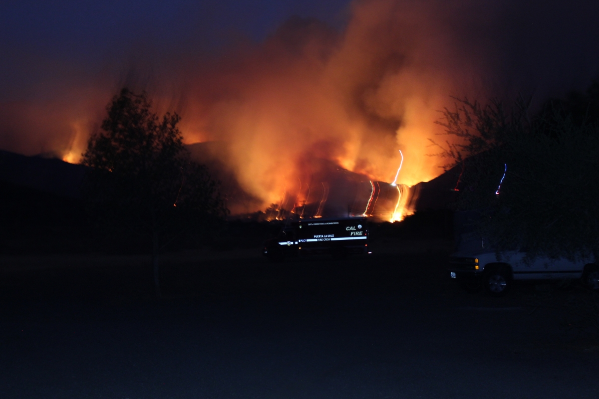 Update 10 p.m. The fire is now 4,234 acres and 5% contained. The fire continues to threaten the communities of Barrett, Potrero, and Tecate. Multiple agencies are on scnee fighting fire and protecting structures through the night.