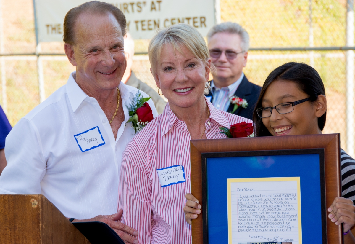 The Brady’s $3 million donation to the La Mesa Capital Campaign included $1 million to renovate the existing teen center, which was renamed the Brady Family Teen Center, along with $2 million to build the Brady Family Clubhouse.