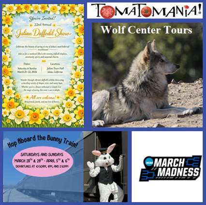 April 5, 2026 (San Diego’s East County) – As April continues, drifting into the merry month of May, there are many unique events popping up across our inland region.