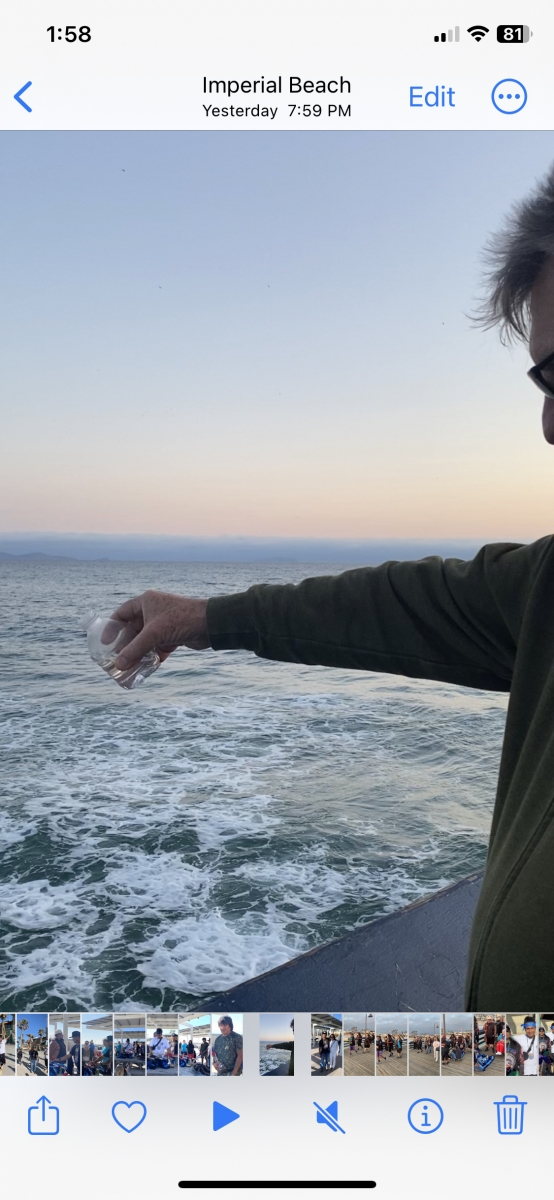 After the blessing, everyone was given the opportunity to pour some of the water into the ocean off of the pier.