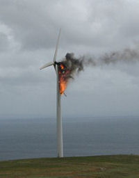 • A $6 million wind turbine caught fire at the Cathedral Rocks Wind Farm, starting blazes on the ground from falling embers the Adelaide Now newspaper covering Australia/New Zealand reported in February 2009.
