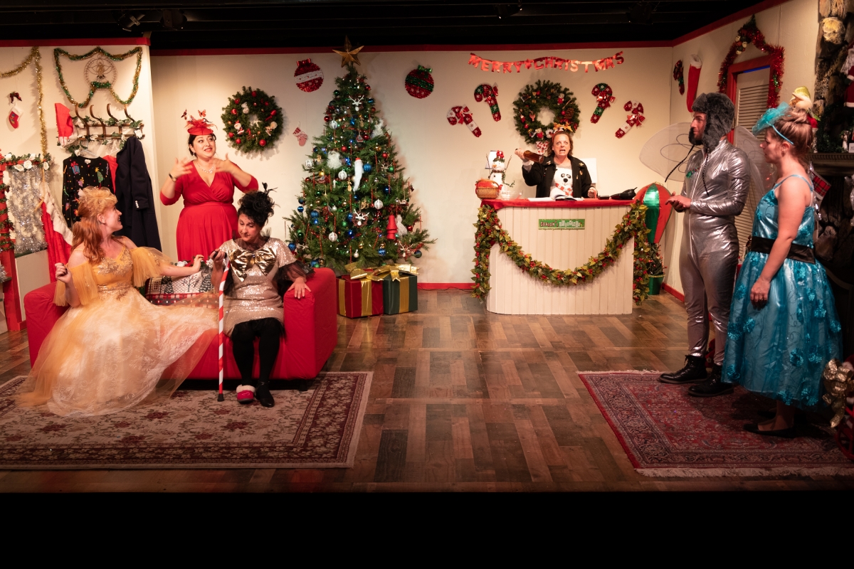 Kerry Menchin plays the owner of the Snowflake Inn, trying her best to keep holiday cheer throughout the comings and goings. She pulls off her character with aplomb. Seventeen characters weave their way through the Inn, each actor shining his or her own light and adding to the magic of the show. Kudos to Goldstein and the cast for a delightful time.