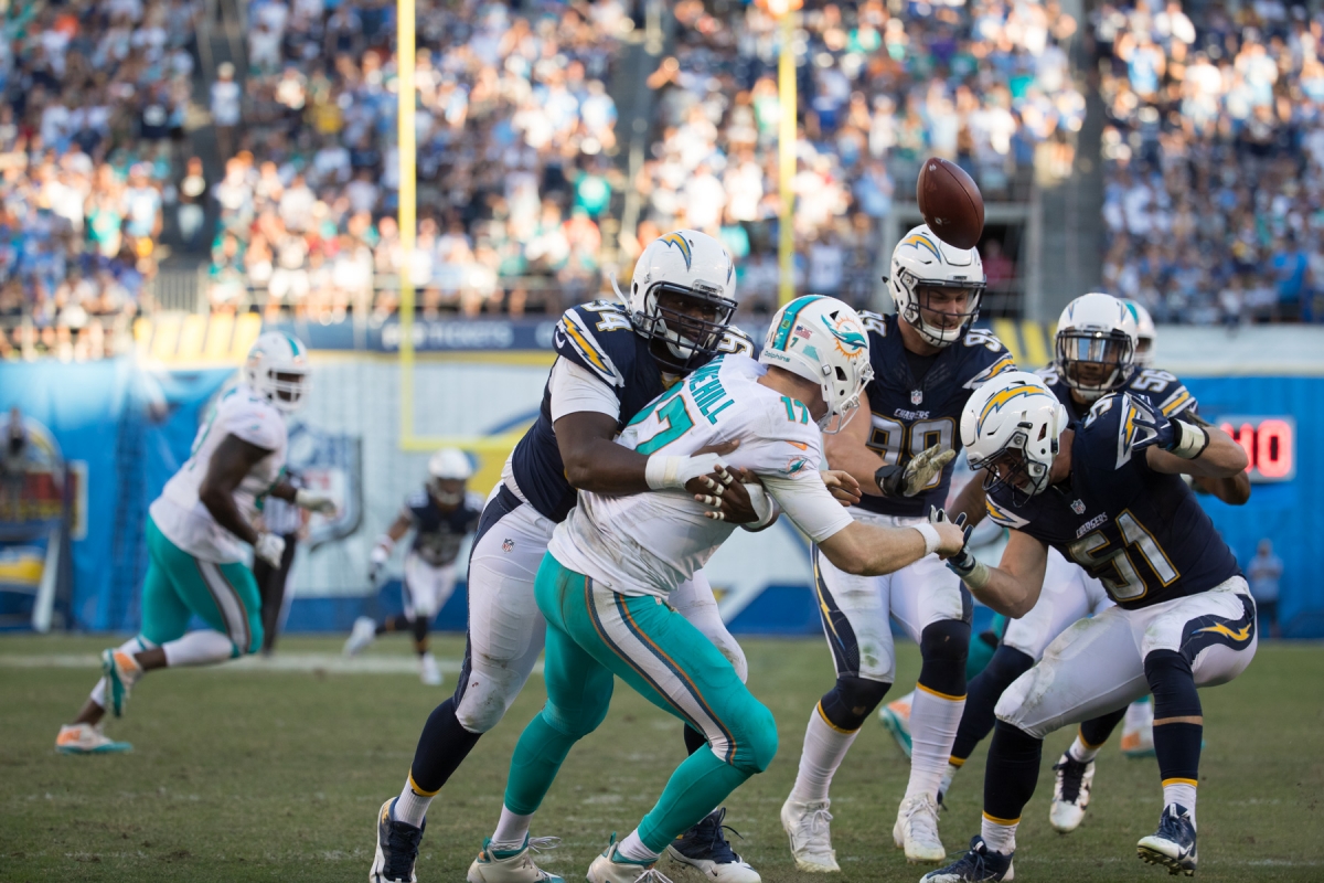 In the fourth quarter, all looked lost. The Chargers looked like they were about to go back to their old fourth quarter ways, but none other than Tyrell Williams put that rumor to rest. He caught a pass across midfield and took it to the house and the Bolts went up by three, 24-21, with four minutes left to play. Rivers broke the tie with Elway and moved into eighth for most touchdown passes of all time with 301. But after Tannehill aired a long pass down to the 10 yard line, Andrew Franks kicked a 24-yard field goal to tie the game at 24. With a minute left, the Chargers had their last opportunity to take the lead, but on a pass play, Rivers threw his third interception and this time, it hurt badly. Kiko Alonso picked off the ball and returned it for a 69-yard pick six. The Dolphins went ahead 31-24. The Chargers tried one last time to tie the game with a minute left, but Tony Lippett gave Rivers his fourth interception of the day and sealed the win for the Dolphins. They go to 5-4 while the Chargers fall to 4-6.