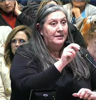 But Mary Davis (photo, right) sees the resolution as “standing up for law and order.” She insists that isn’t racist. While opponents spoke of “kids in cages” in detention camps, Davis spoke of “kids in coffins.” She held up a photo of three children whom she said were killed in Sacramento by an undocumented father after he was arrested for a violent offense, then released.