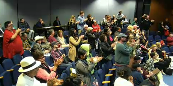 The meeting was contentious, sparked by numerous emotional outbursts, threats to recall Councilmember Ortiz for supporting the resolution, and playing of phone threats made against Councilmembers who voted against the measure previously.
