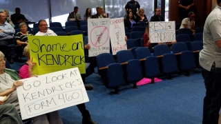 Earlier in the meeting, Kalasho organized a small group of audience members to carry protest placards in his defense and to speak to his defense. The number was far smaller than the crowds that came to previous Council meetings demanding Kalasho’s resignation.