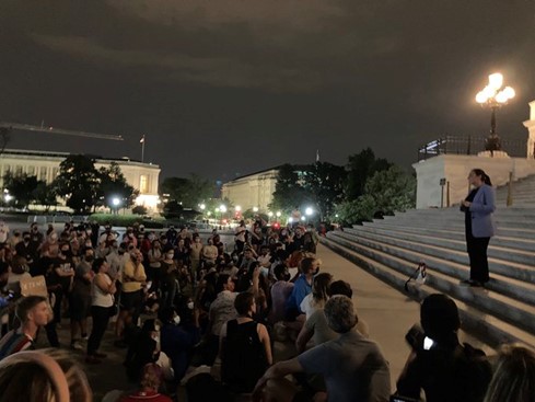 Photo: Congresswoman Jacobs speaks at midnight rally outside Capitol, calling for an eviction moratorium to protect renters.
