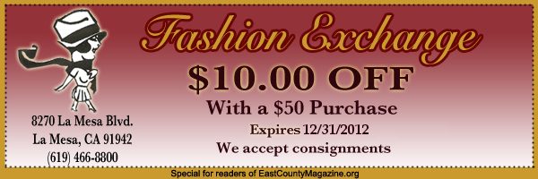 “My Mom would bring home bags of hand-me down clothes. I had the best closet in town,” says Romano, owner of Fashion Exchange at 8270 La Mesa Blvd. in La Mesa. She went on to attend a fashion college, then worked as a traveling makeup artist at Nordstrom’s, Bloomingdale’s and Macy’s department stores.