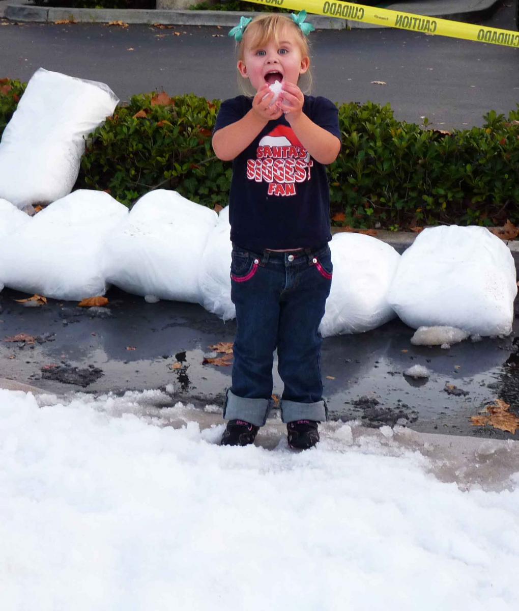 At the Olde Time Christmas Village, sponsored by the Rancho San Diego-Jamul Chamber of Commerce, youngsters frolicked in snow--some for the first time.