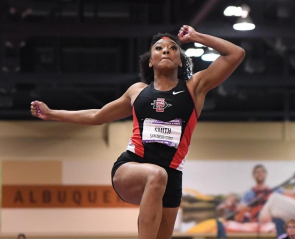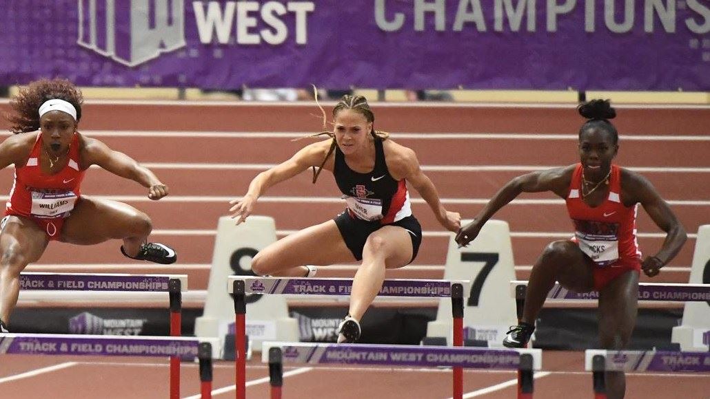 February 27, 2020 (Albuquerque) - he Aztec track and field team had a successful first day at the Mountain West Indoor Championships Thursday at the Albuquerque Convention Center. The day was highlighted by Asia Smith winning the pentathlon and the Aztecs shattering their school record in the distance medley relay.