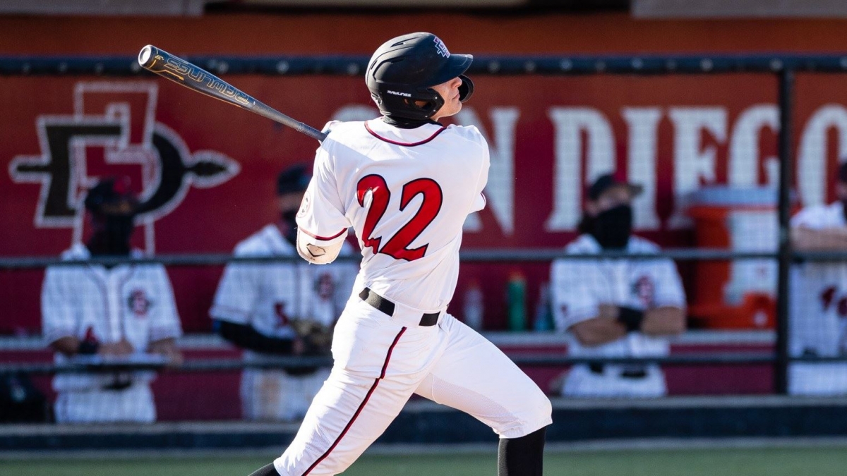February 26, 2021 (San Diego) - San Diego State erupted for seven runs in the bottom of the seventh on Friday to highlight a 10-4 victory over UC San Diego in the first game of a weekend series at Tony Gwynn Stadium.