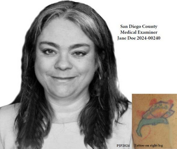 February 25, 2024 (Santee) -- A citizen’s tip helped the County Medical Examiner’s Office identify a woman who died in the Jan. 22 storm. The body of Faith Angle, 46, was found in brush along Forester Creek in Santee.