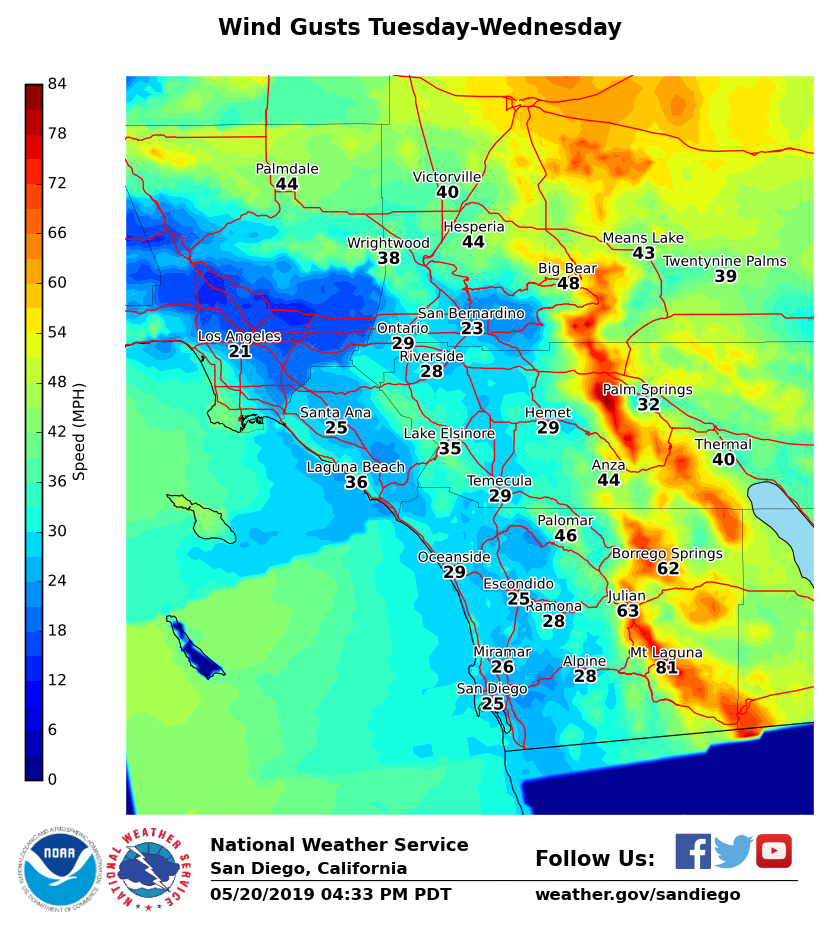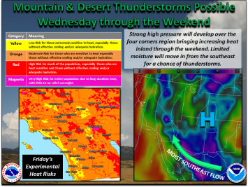 October 1, 2020 (San Diego’s East County) – A heat wave is forecast to continue through Friday, with temperatures 10 to 20 degrees above normal. The National Weather Service has issued an excessive heat warning through 8 p..m Friday