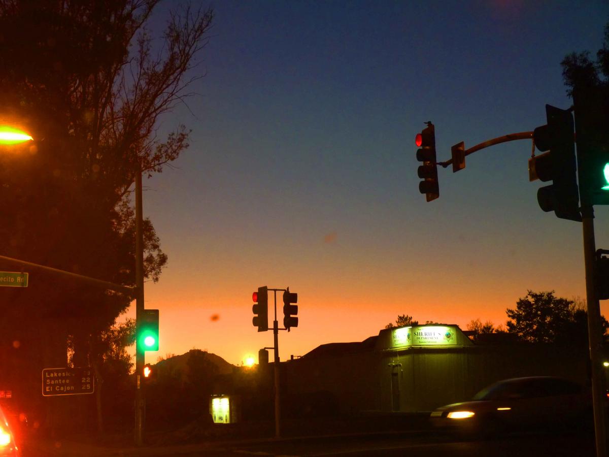 Heading home through downtown Ramona, we watched the sky transform into deepening hues of orange and scarlet, melting into the distant mountains beyond—a colorful ending to a beautiful day.