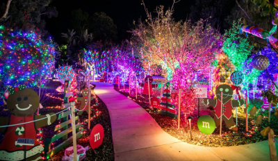 Guests will begin the adventure at Steele Canyon High School and travel to a winter wonderland with drive-through candy cane light tunnel, over half a million lights, an 18-foot tall musical Christmas tree, themed zones such as Candyland and Holiday Under the Sea, and socially distanced interactions with characters like Buddy the Elf. You can also have family photos taken in your car –with a digital Santa Claus added in.