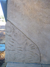 Decorative elements include copper downspouts, as well as hummingbird elements etched into a light fixture by Deason and sculptured on the studio’s exterior wall by Hamilton. In addition, handprints of family