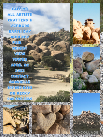 The Desert View Tower seeks artists, crafters and vendors for its annual Earth Day celebration from 10 a.m. to 5 p.m. on April 22. Contact Gabrielle at 619 609 6463 or Becky at 949-698-3359, and check Desert View Tower’s Facebook page for details to come.