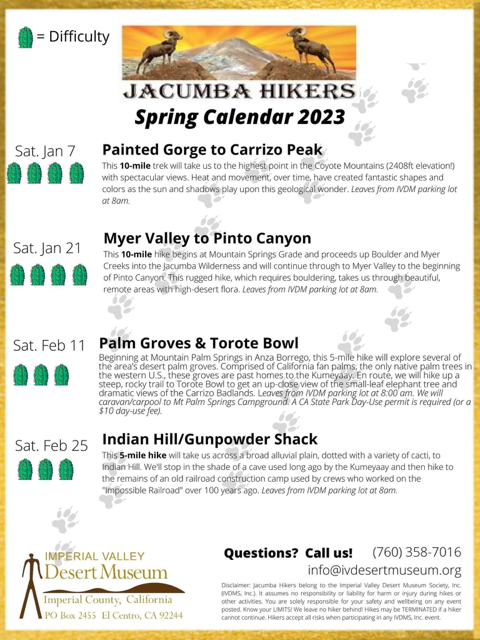 February through April: Jacumba Hikers outings