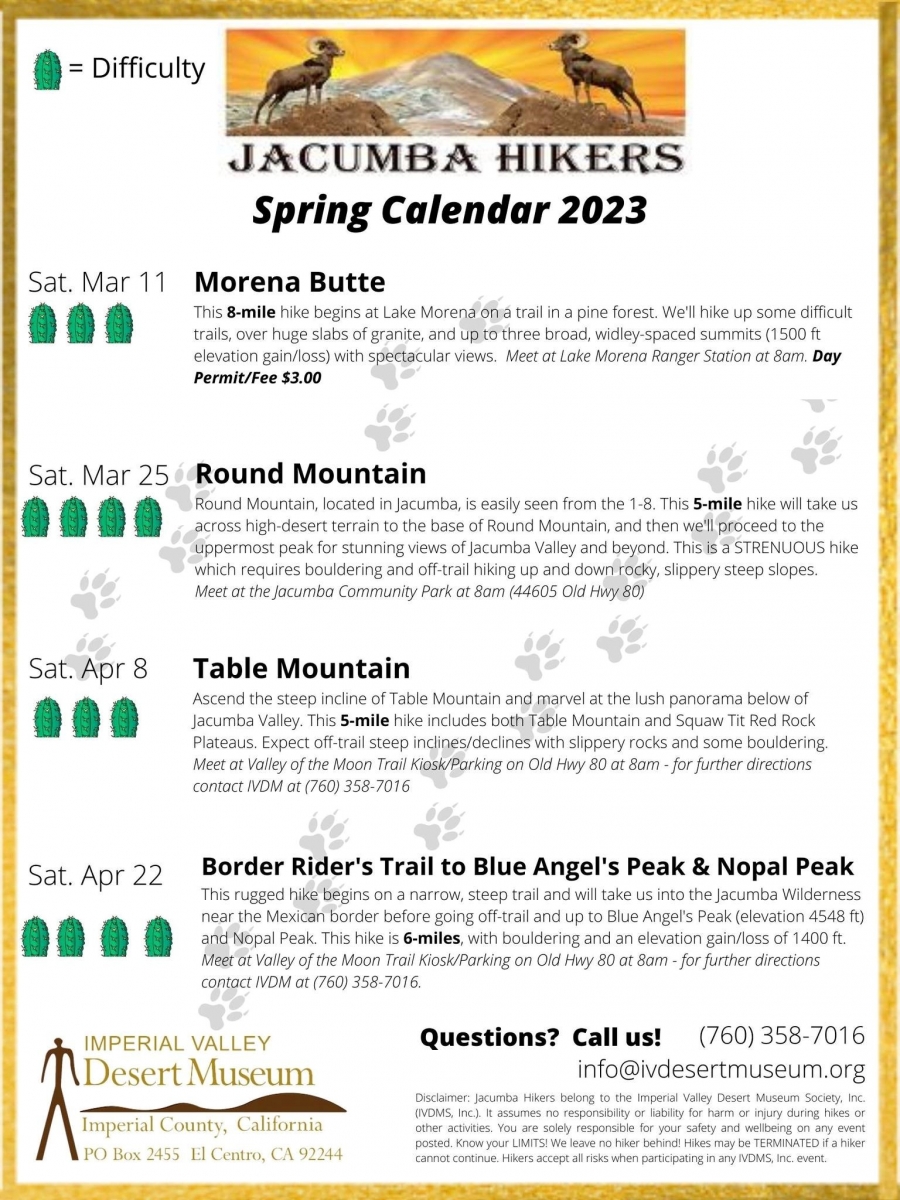 See the two flyers below for details, or visit the Jacumba Hikers Facebook page.