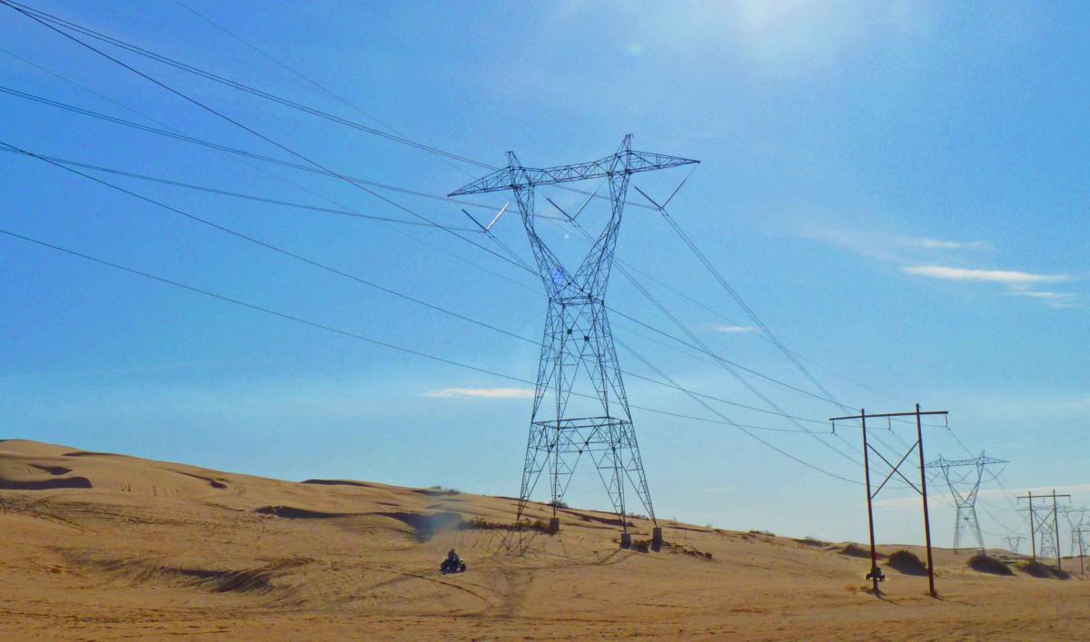 High voltage lines now even occupy the once desolate dunes near El Centro, where off-road racing and dune buggy enthusiasts must now dodge towers that dwarf dunes of shifting sands that formerly looked like a scene out of the deserts of Arabia.
