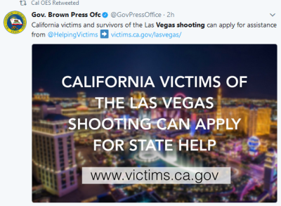 The California Victim Compensation Board (CalVCB) is encouraging residents impacted by the mass shooting at the Route 91 Harvest Music Festival on Sunday, October 1 in Las Vegas to contact them at 1-800-777- 9229 for assistance, guidance and aid.