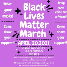“They are still killing us, they are still brutalizing us,” Williamson noted, posting an announcement of a Black Lives Matter march tonight at 6 pm. starting at 800 B Street in San Diego.
