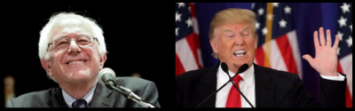 Photo, left: Bernie Sanders, by Troy Page; Photo, right: Donald Trump, by Gage Skidmore