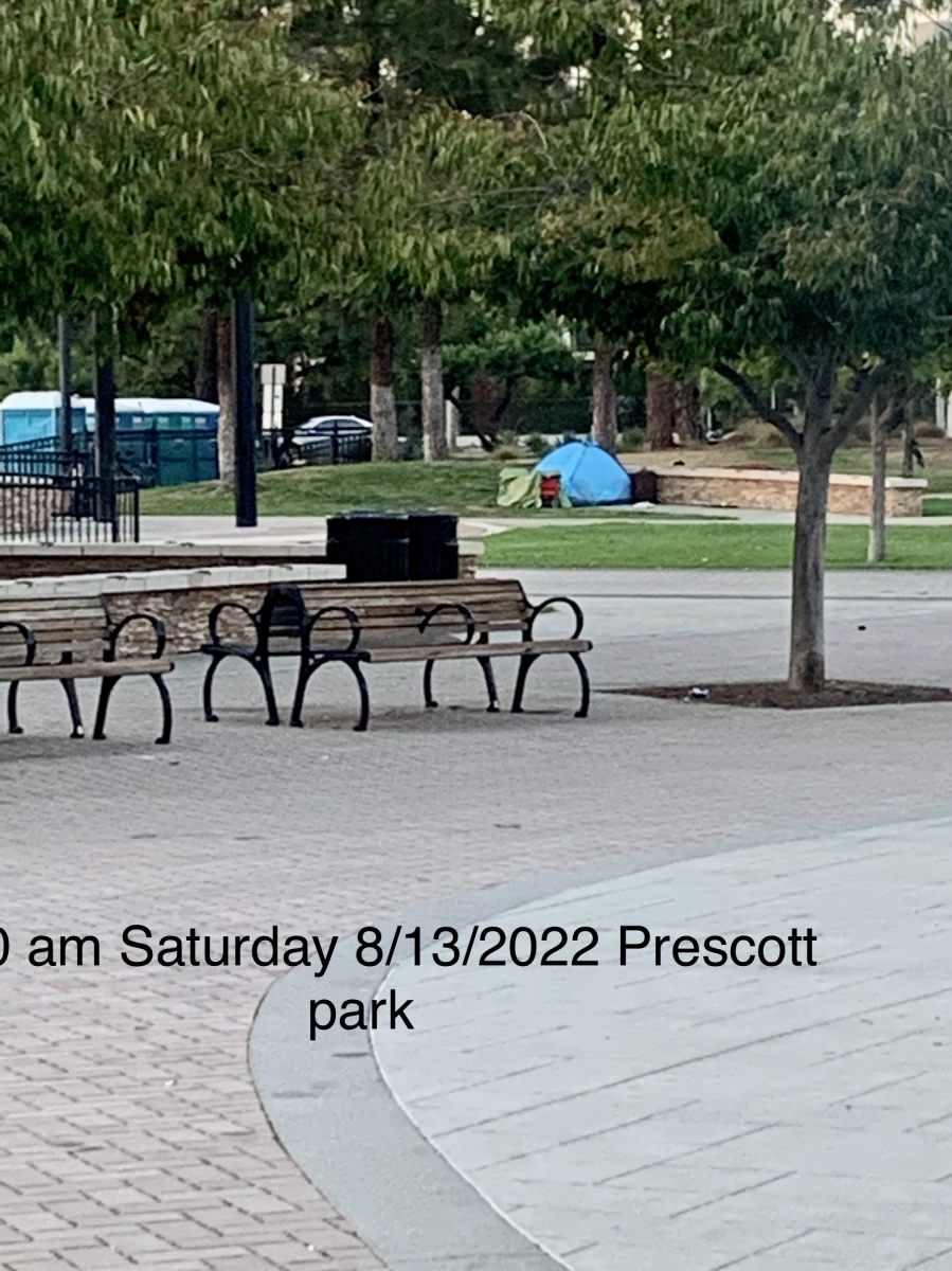 Photo by Robert Gehr:  A homeless person's tent on grassy area along Main Street in downtown El Cajon