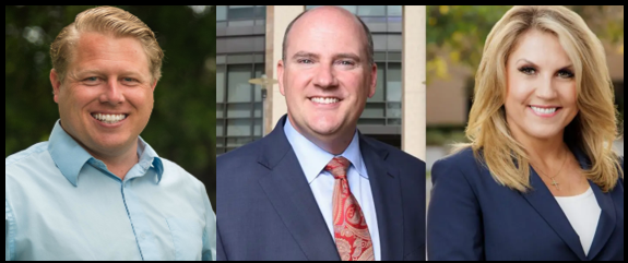 Photo:  5th Supervisorial district candidates Kyle Krahel, John Franklin and Rebeca Jones.