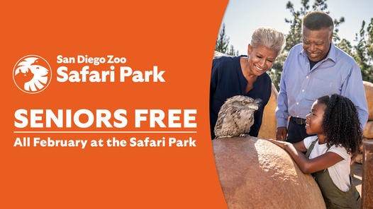 January 29, 2023 (Escondido) – Throughout February, admission is free to the San Diego Zoo Safari Park in Escondido for seniors age 65 and up.