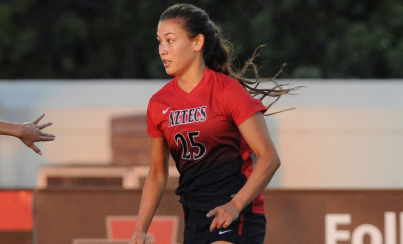 Photo: Casey Macias scored his first goal of the year on Thursday vs. Stanford. Courtesy goaztecs.com
