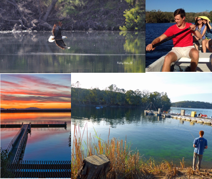 Allowable watercraft you can bring include boats, canoes, kayaks, row boats, float tubes, and wakeboarding. Three-seater personal watercraft are allowed only if towing a water skier, wakeboard or tube device. With a valid fishing license, you can drop a line to catch largemouth bass, carp, catfish, crappies and sunfish.
