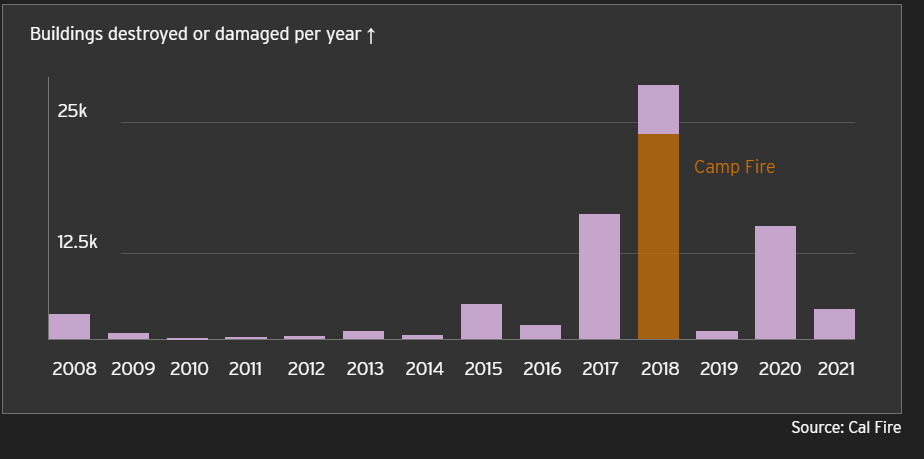 Photo, left: the Camp Fire wasn't the biggest fire by acres. It was not even the biggest that year.