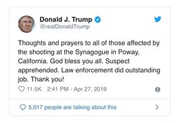NBC 7 reports that multiple sources confirm the suspect is John T. Earnest, who published a manifesto at 10 a.m. on Reddit threatening to live-stream the shooting in Poway. In a rant filled with racist remarks and Bible quotes, he also claimed credit for arson at an Escondido mosque a month ago. The killer stated that he was inspired by the recent deadly attack on a New Zeland mosque and by shootings at a Pittsburgh synagogue last year.
