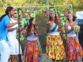 PirateSam "Captain Jack" Sparrow poses with Teen Queens at Celebrate East County event in the Heritage of the Americas Museum: photo by Miriam Raftery (right)