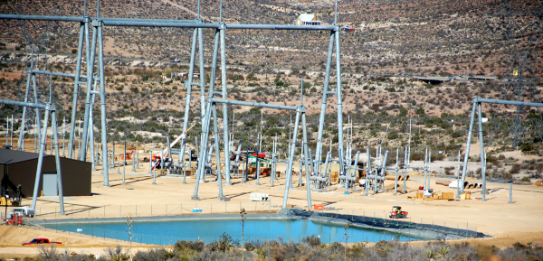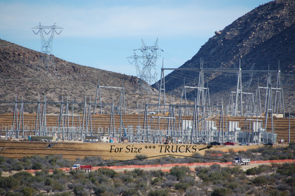 February 15, 2014 (Jacumba)—Wayne Brammer sent in these photos of SDG&E’s new Eco Substation in Jacumba. The project is (so-named for hooking up to industrial-scale renewable energy projects. But to most backcountry residents, the project is an ecological disaster that destroyed the landscape and used three times more water (90 million gallons total) than SDG&E estimated.