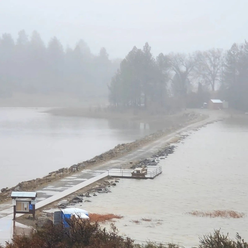 Photo, right by Craig Maxwell: rains filled Lake Cuyamaca to the dam, after years of low water levels.
