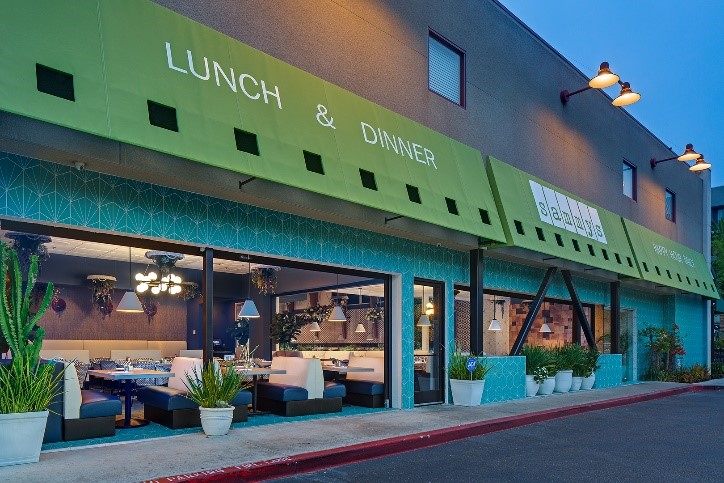 The first thing you notice as you walk up to Sammy’s in La Mesa is that the entire front of the restaurant is now open to the outside. Large garage door-type walls pull up to open the entire front of the restaurant to the outside, creating a brighter, lighter sense. Trees and plants placed along the entire front helps create an open, garden feel while dining.