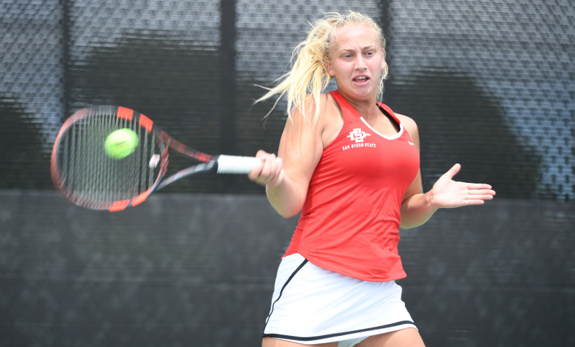 April 21, 2017 (San Diego) - San Diego State emerged with its third consecutive victory Friday after recording a 4-2 conquest of Santa Clara in a non-conference dual match at Aztec Tennis Center. With the win, SDSU moves to 8-14 on the season, while the Broncos slip to 14-6 overall.