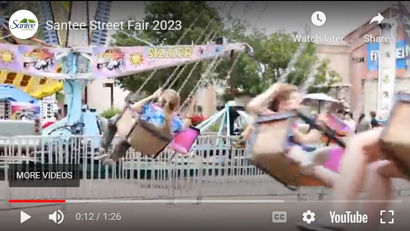 Photo: Youtube, City of SanteeThere will also be an interactive kids’ area with various carnival rides, games and prizes to win. A large community stage will be at the event with continuous live music and performances.