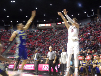 January 10, 2017 (San Diego) - The SDSU men’s basketball team has opened Mountain West conference play with a 2-0 record against Utah State and Colorado State. Tonight they tried to make it 3-0 against the Spartans of San Jose State, whose women’s team will give the lady Aztecs a run for their money tomorrow night in San Jose. The Spartans were greeted in Viejas on a cold, rainy San Diego night. Luckily, basketball is played indoors! San Jose State comes into Viejas at a pitiful (to put it nicely) 3-12 overall record and 0-4 in the Mountain West.