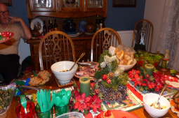 The event hosted a potluck with an array of savory holiday dishes, elegant desserts and spiced holiday Wassail.